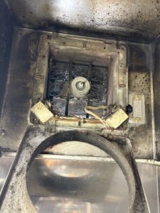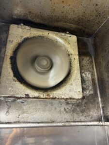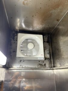 和歌山市内の居酒屋オーナー様より、厨房の換気扇の吸い込みが悪く、異音も発生しているとご相談を受けました。長年の油汚れが本体と内部モーターに蓄積し、劣化によって本来の性能を発揮できていない状態でした。