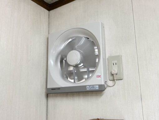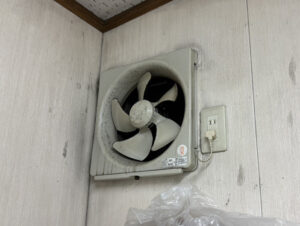 施工内容:既存の換気扇を取り外し、壁面簡単清掃、新品換気扇を設置、吸い込みの確認テスト