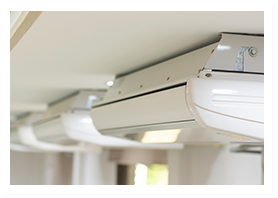 業務用エアコンは使用される場所の形態に合わせて種類がございます。天井埋込み形や天吊形など業者によっては対応できないものもありますが和歌山エリア 電気工事店では対応いたします。修理やクリーニングのお問い合わせの際はどのタイプのエアコンなのか教えていただけるとスムーズです。